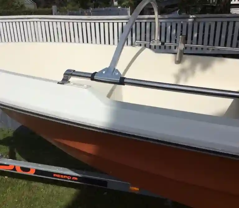 Jos veneessä on kaiteet, venepressutuki voidaan kiinnittää suoraan reilingeihin. Tämä mahdollistaa nopean, tukevan ja turvallisen asennuksen ilman lisärakenteita veneen sisälle.
